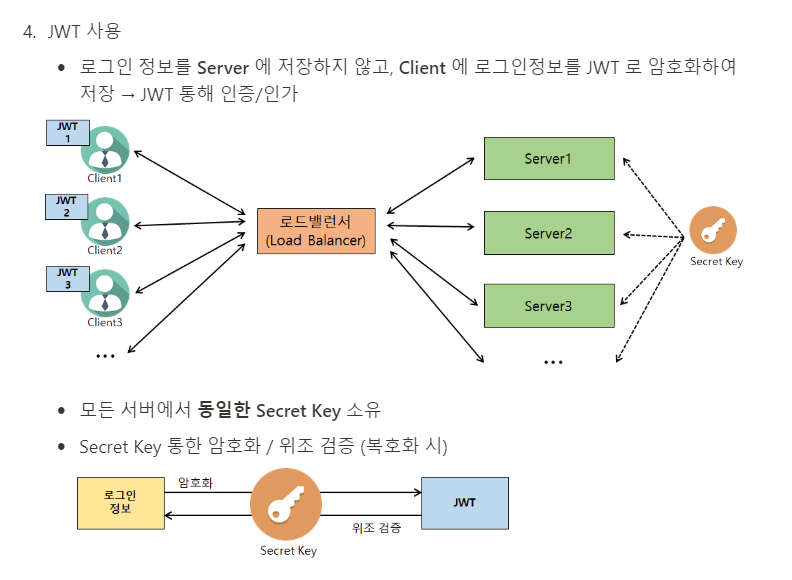 그리고 나에게 가장 어려웠던 기술인 JWT를 구현해봤다. 먼저 어려운 기술인 만큼 왜 JWT를 사용하는지 부터 공부 했었다. JWT를 사용 하는 이유는 다음 아래 설명에 있다.