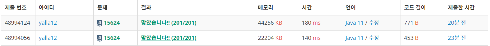 List보단 배열이 메모리와 시간 모두 효율이 좋았다.