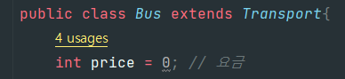 그렇게 되면 Bus와 Taxi는 부모의 정보를 가질 수 있기 때문에 상속 받은 객체에는 부모의 내용을 따로 코딩하지 않아도 된다. 그래서 중복된 변수선언을 줄일 수 있다는 것이 느껴졌다.
